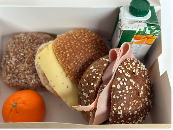 Lekkere lunch box basis met verse zachte bolletjes, belegd met heerlijke vleeswaren en kaas. Geniet ook van je krentenbol met boter en een vers stuk fruit. Aan drank is ook gedacht in deze lunch box. Smakelijk!